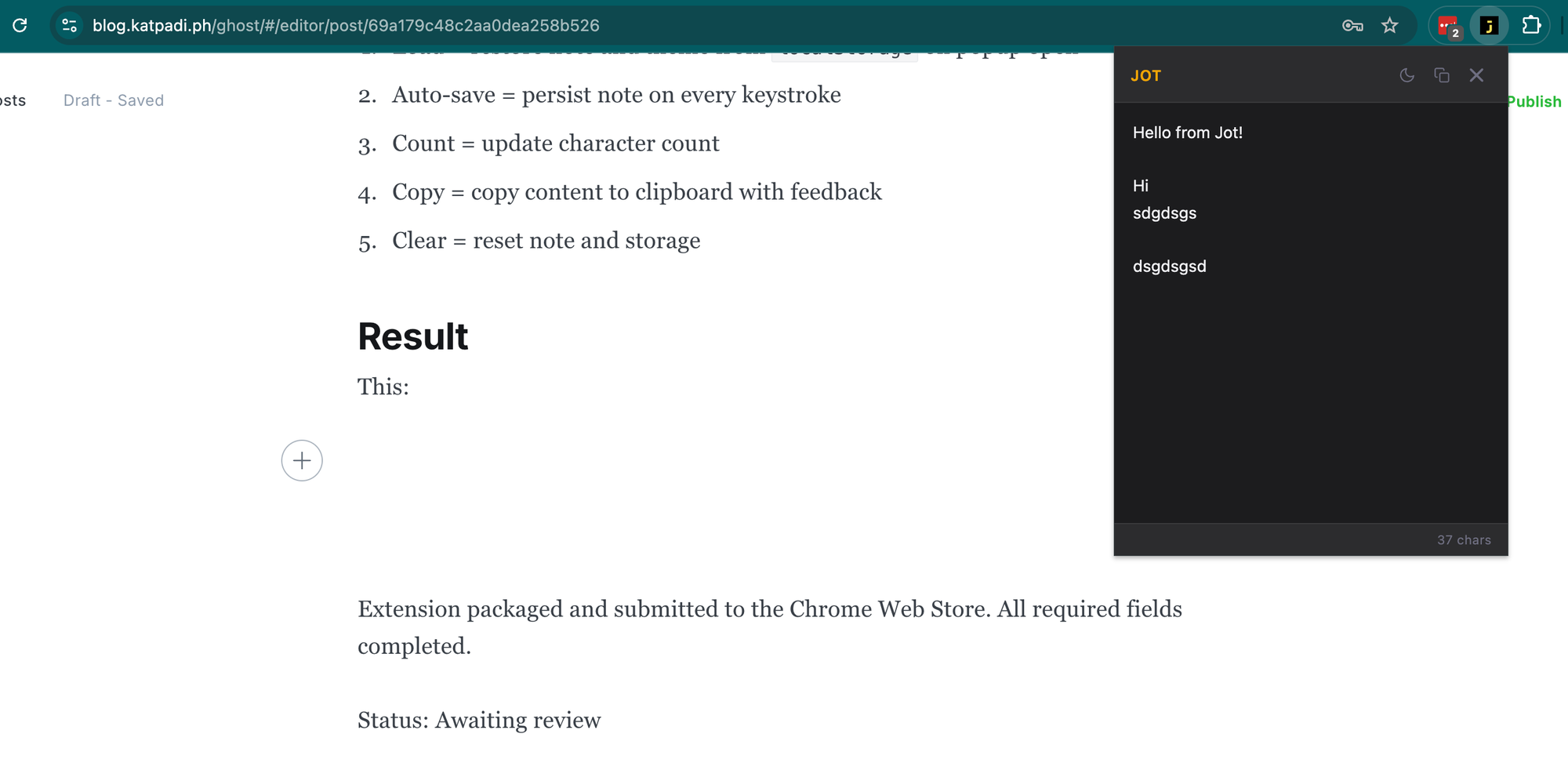 localStorageon popup open - Auto-save = persist note on every keystroke